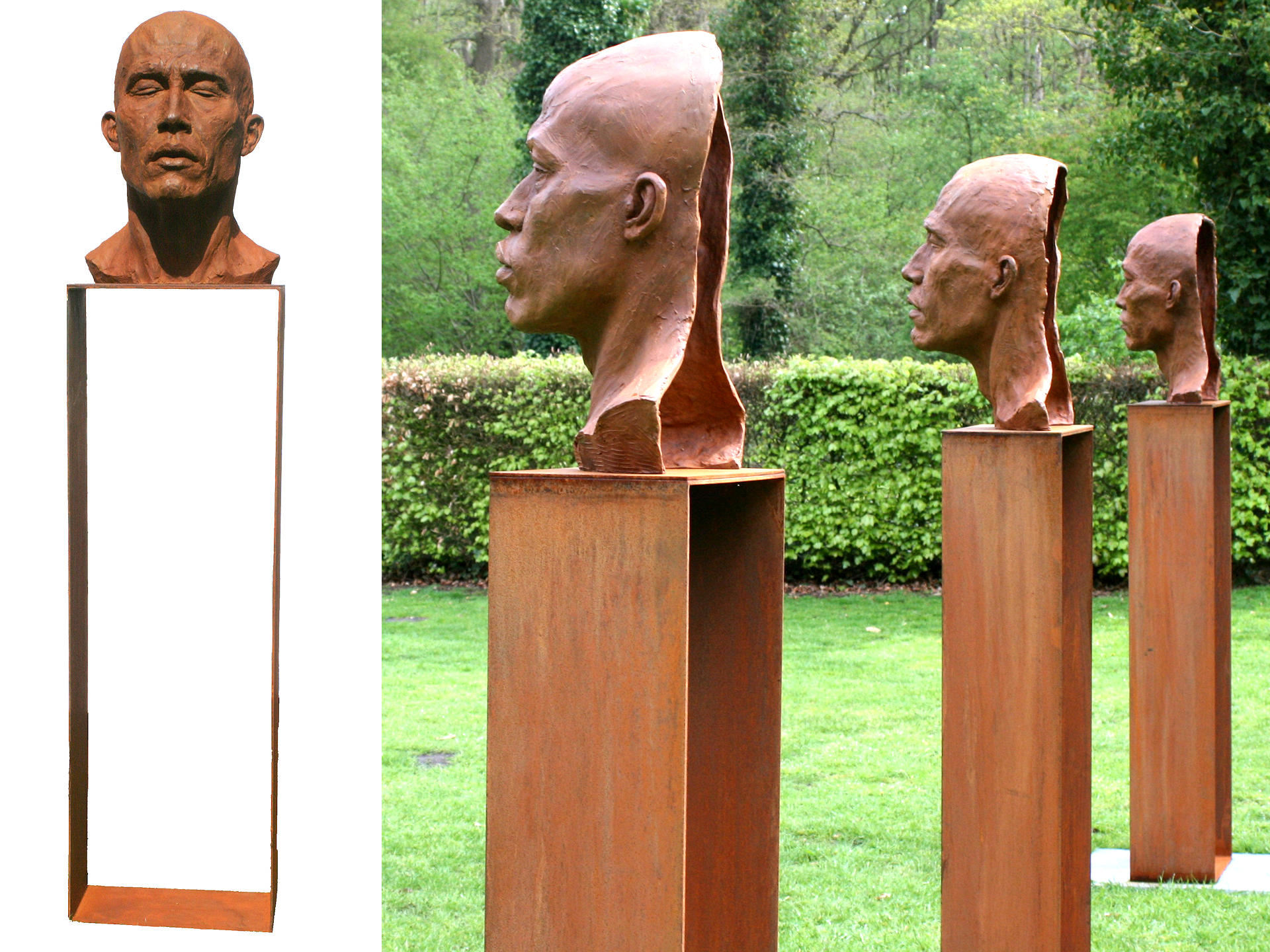 Het beeld is 58 cm hoog en voorzien van een cortenstalen zuil. De totale afmeting is 190 cm hoog