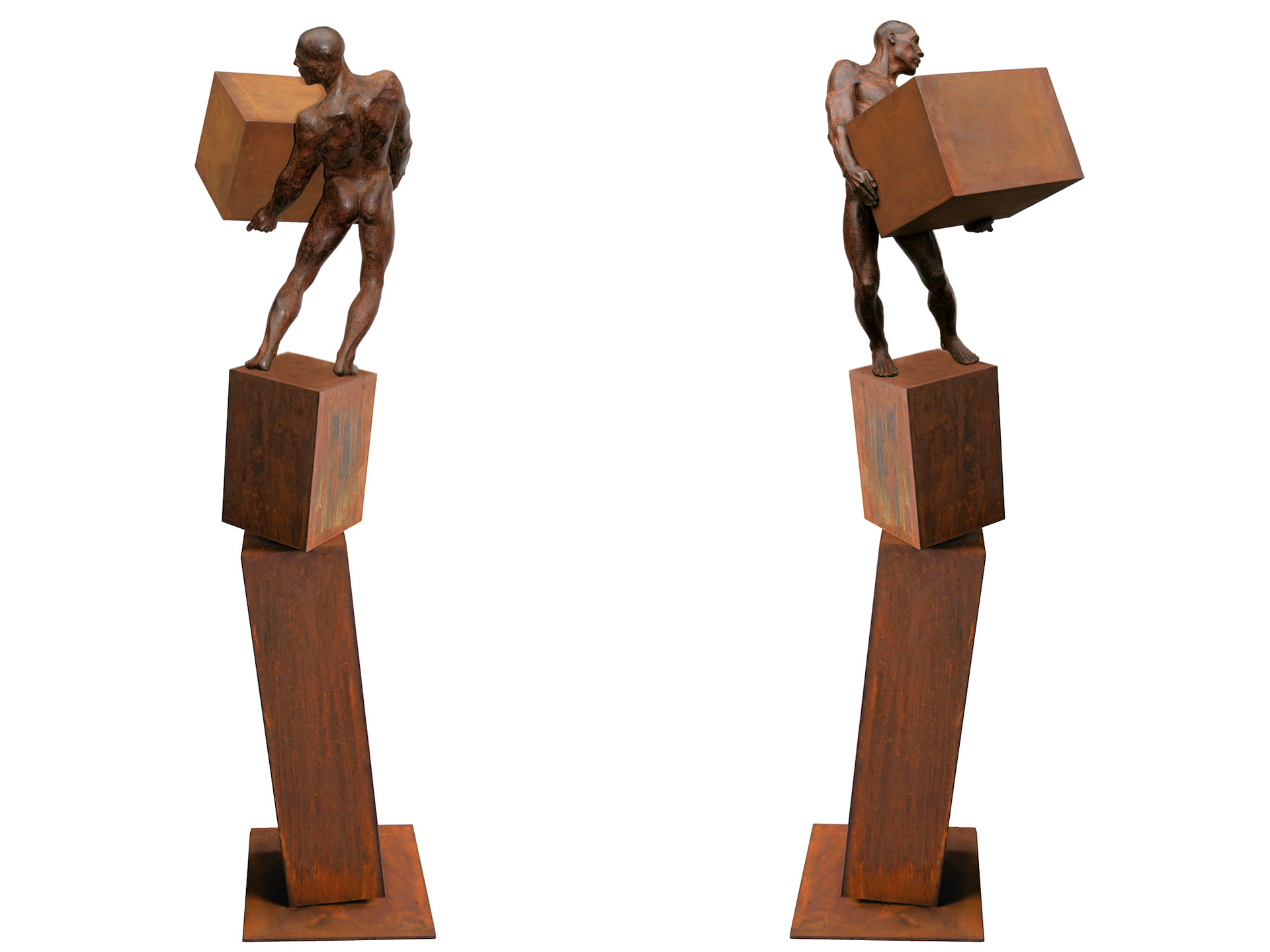Het beeld is 62 cm hoog en voorzien van een cortenstalen zuil. De totale afmeting is 174 cm hoog
