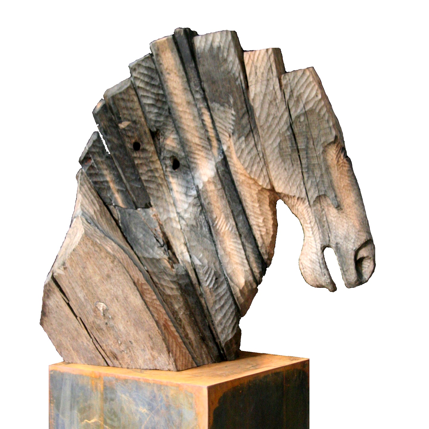 Het beeld is 90 cm hoog en voorzien van een cortenstalen zuil. De totale afmeting is 170 cm hoog