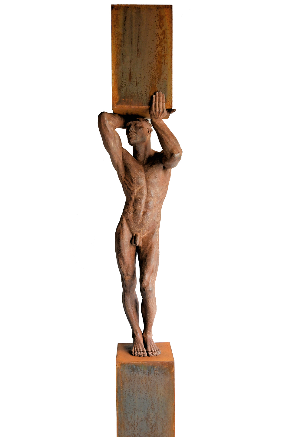 Het beeld is 90 cm hoog en voorzien van een cortenstalen zuil. De totale afmeting is 220 cm hoog