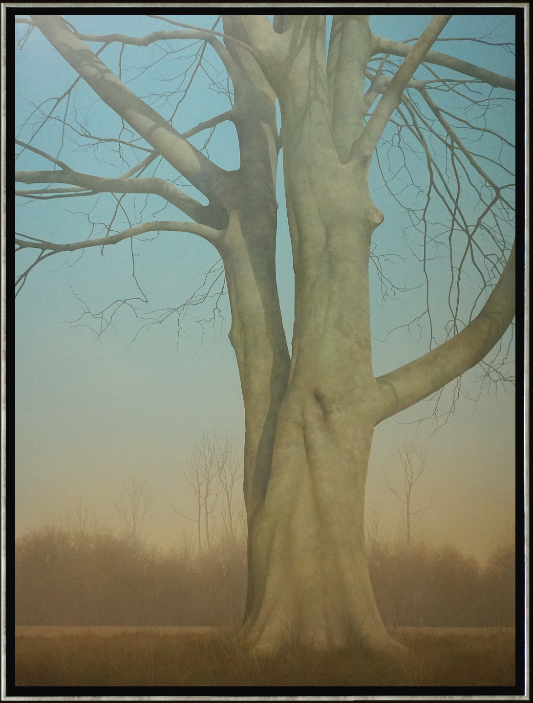 Het schilderij is 61 x 81 cm en voorzien van een subtiele zwarte baklijst met zilver rand. De totale afmeting is 66 x 86 cm
